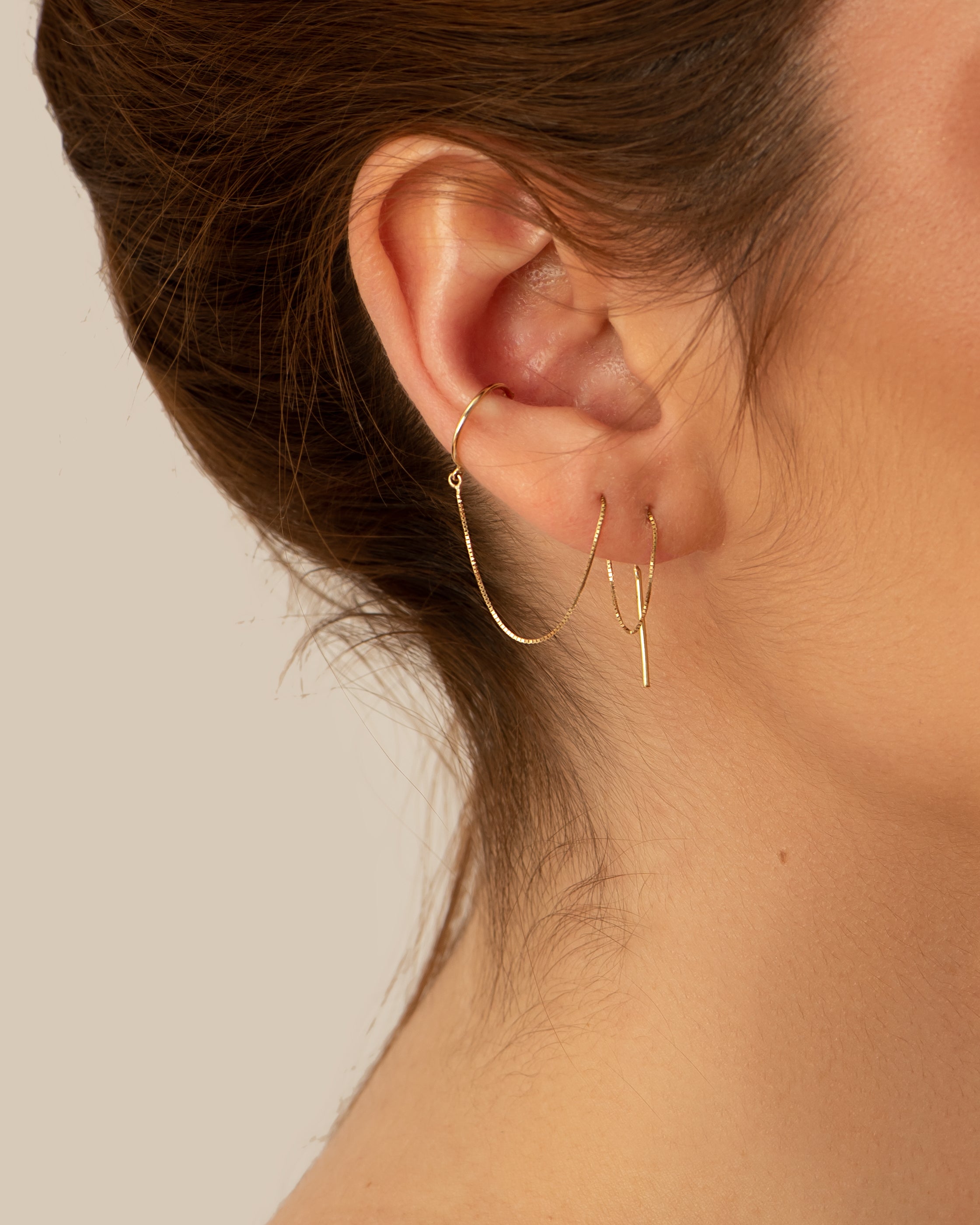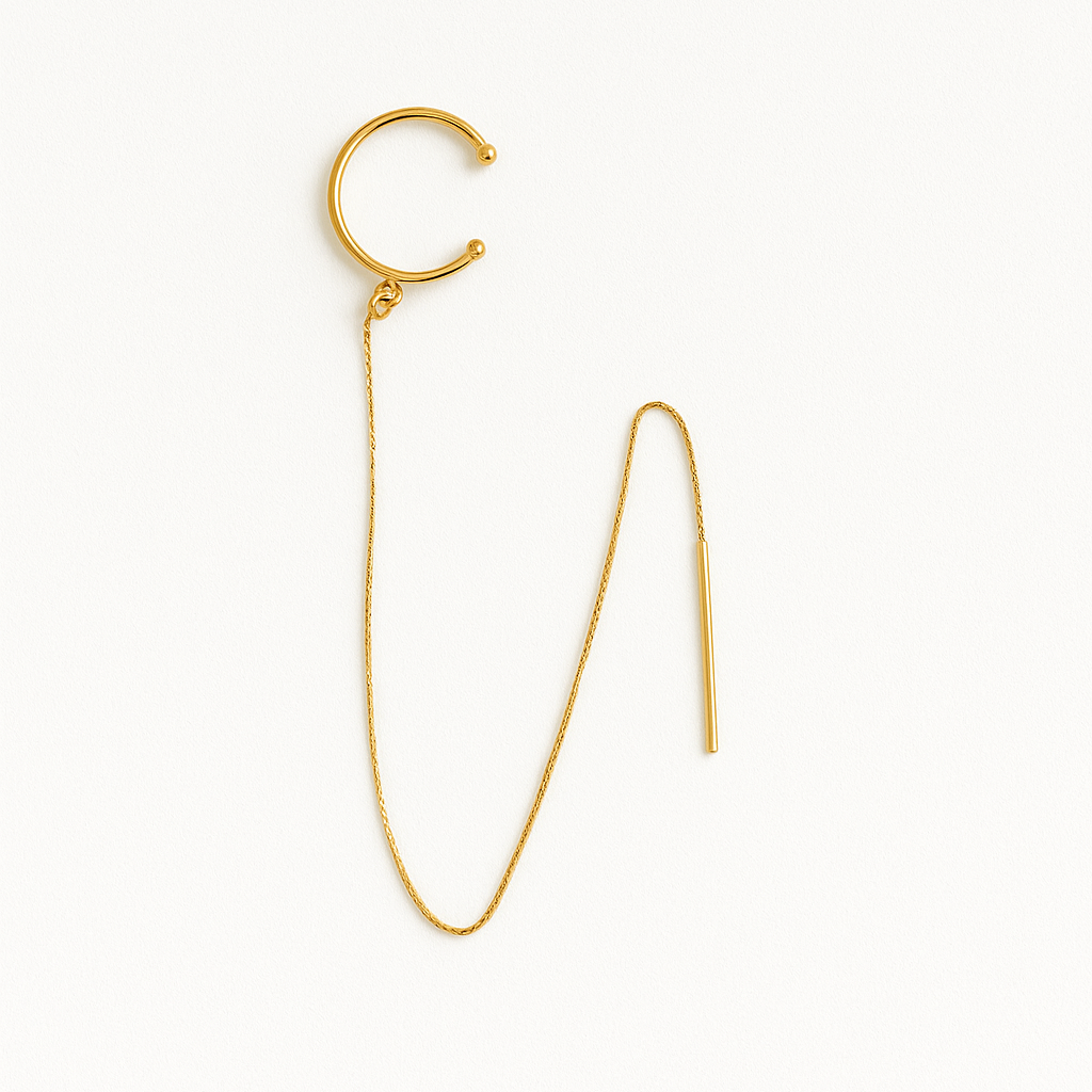 Brinco em Ouro 18k, com corrente veneziana para passar em um ou mais furos e piercing fake, de encaixe.