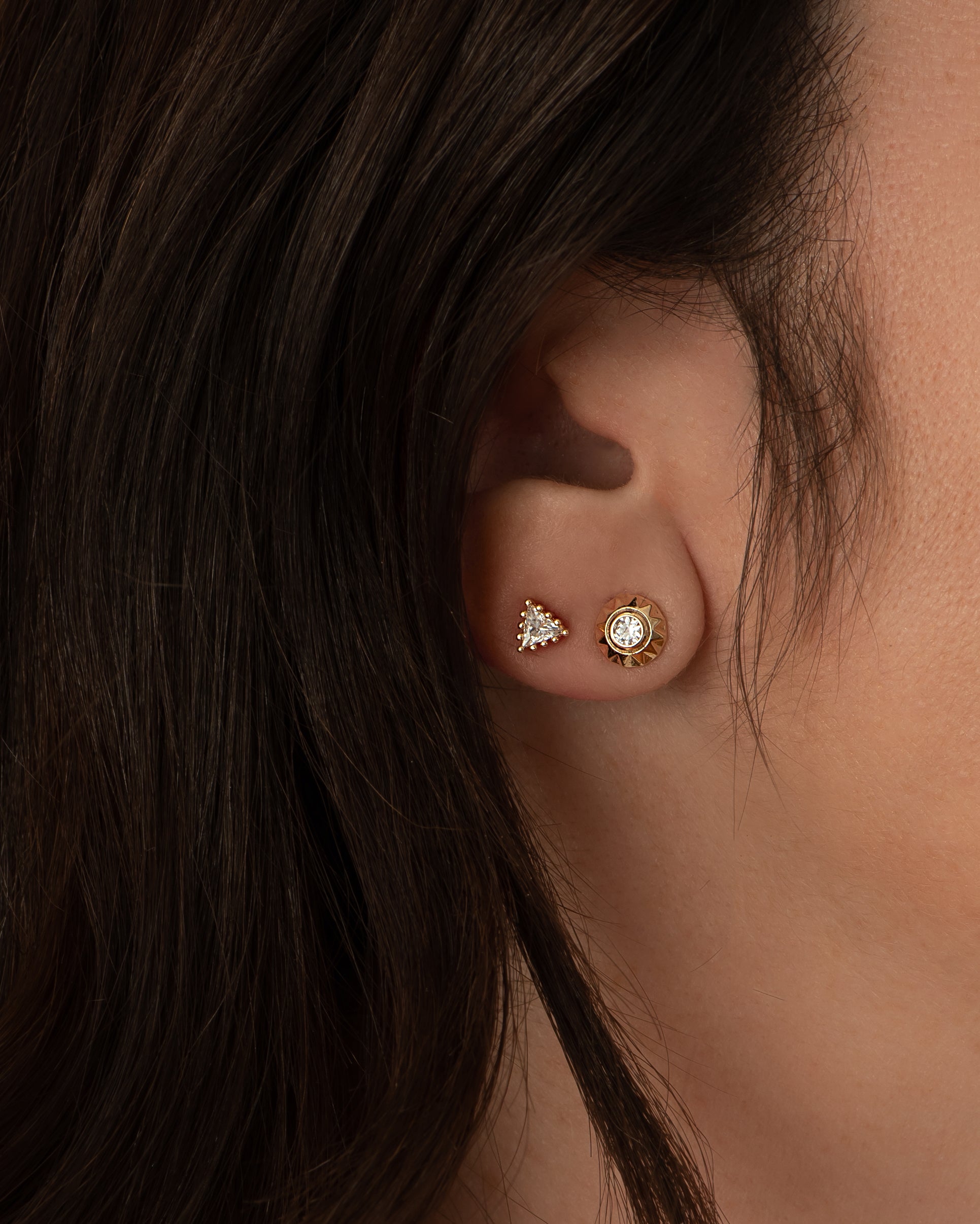 Pular para o conteúdoBrinco em ouro 18k, formato redondo e safira branca