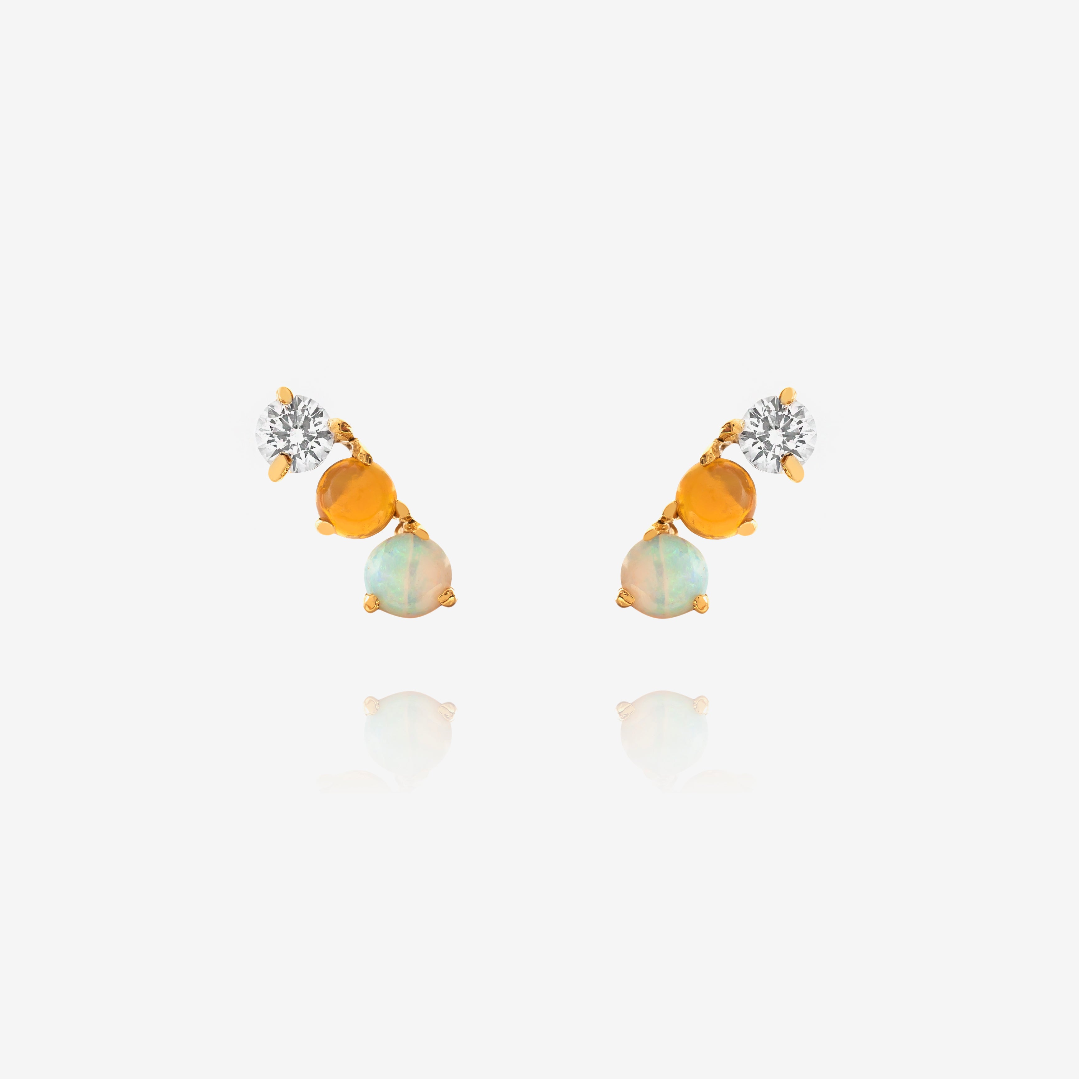 Brinco delicado cravado com duas opalas e uma safira branca