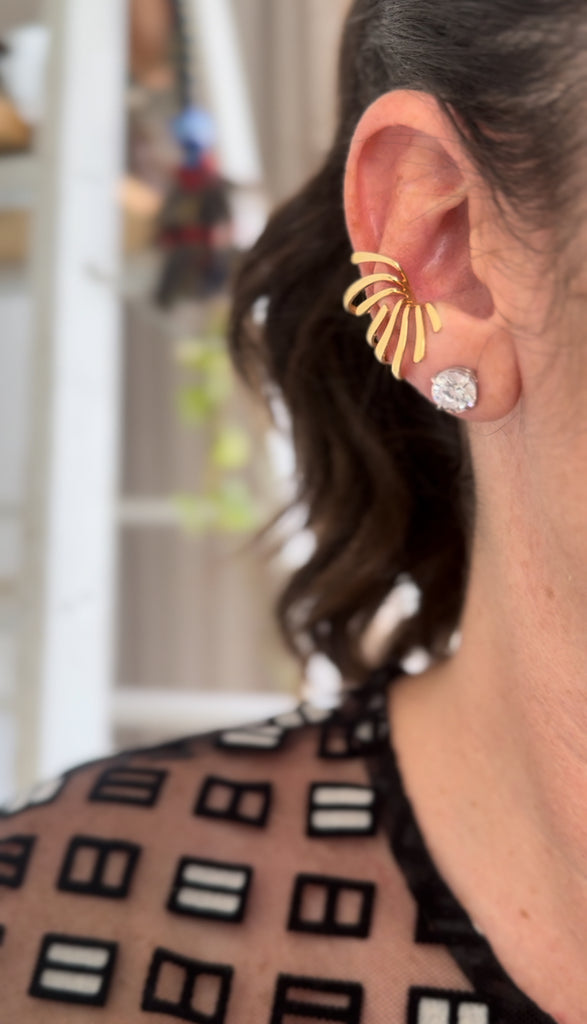 Piercing fake, de encaixe,  feito em ouro 18k, com recortes.