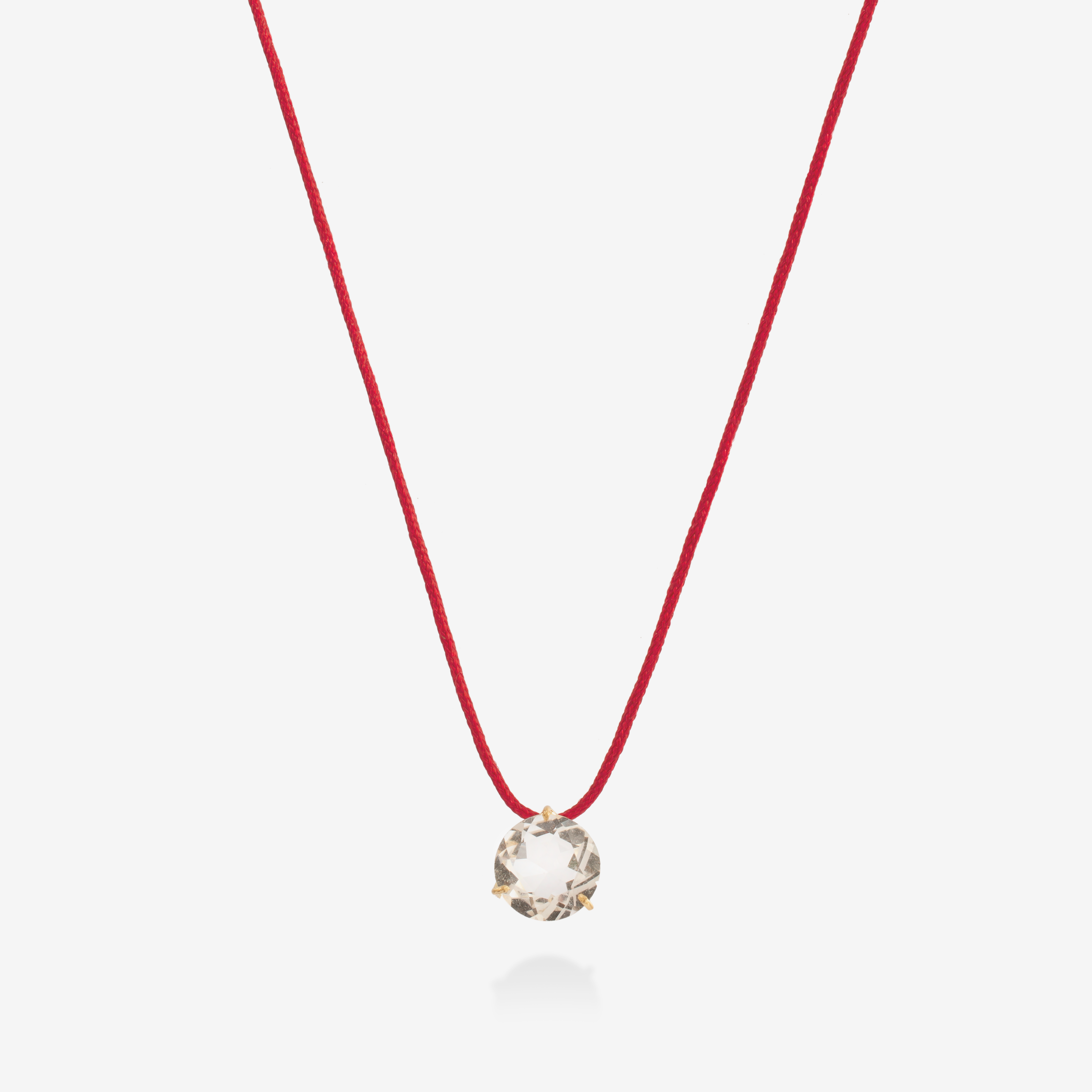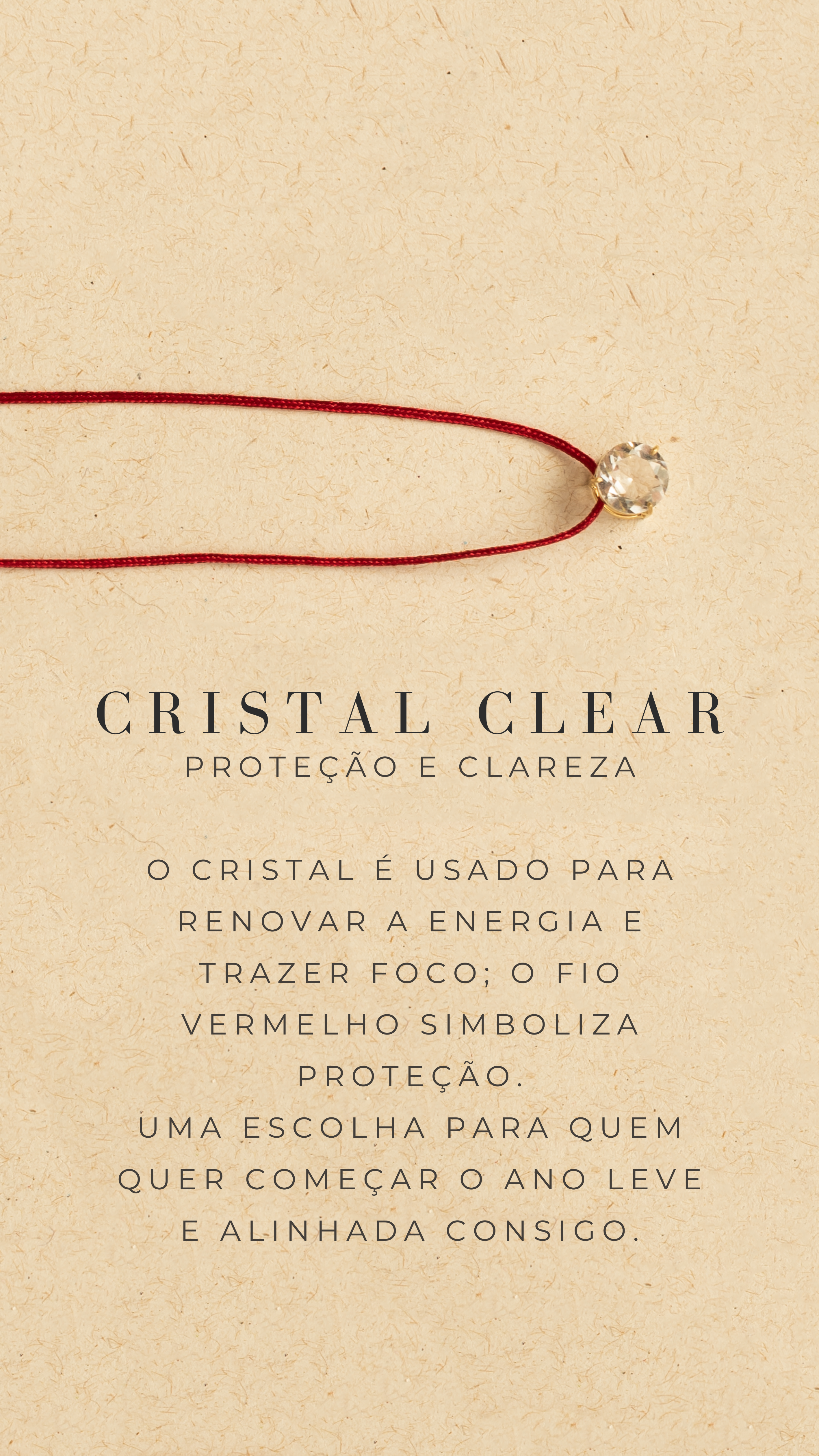 O cristal é usado para renovar a energia e trazer foco; o fio vermelho simboliza proteção.