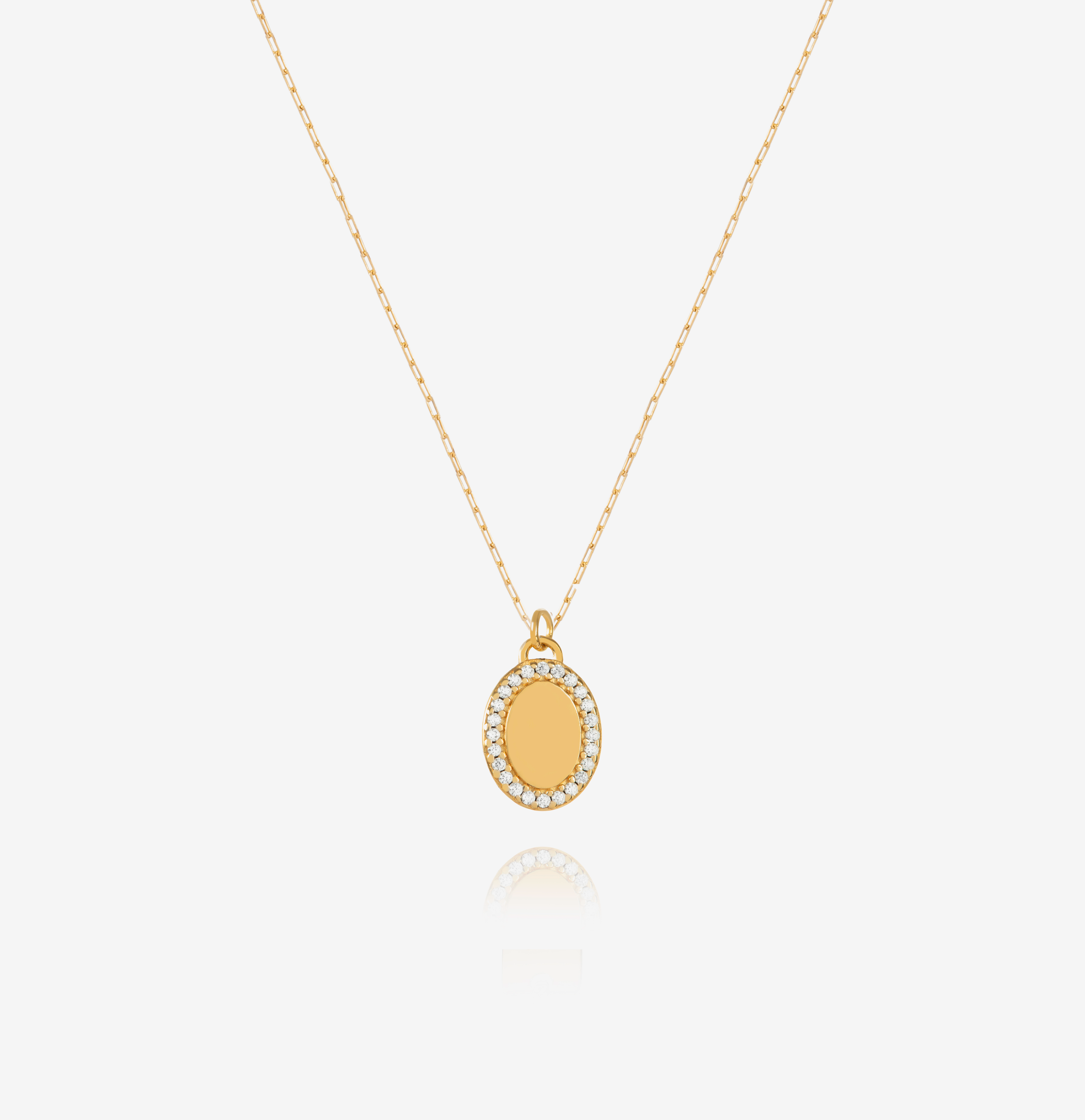 Colar com pingente oval personalizado, feito em ouro 18k e brilhantes cravejados. Você pode personalizar com uma letra ou número.