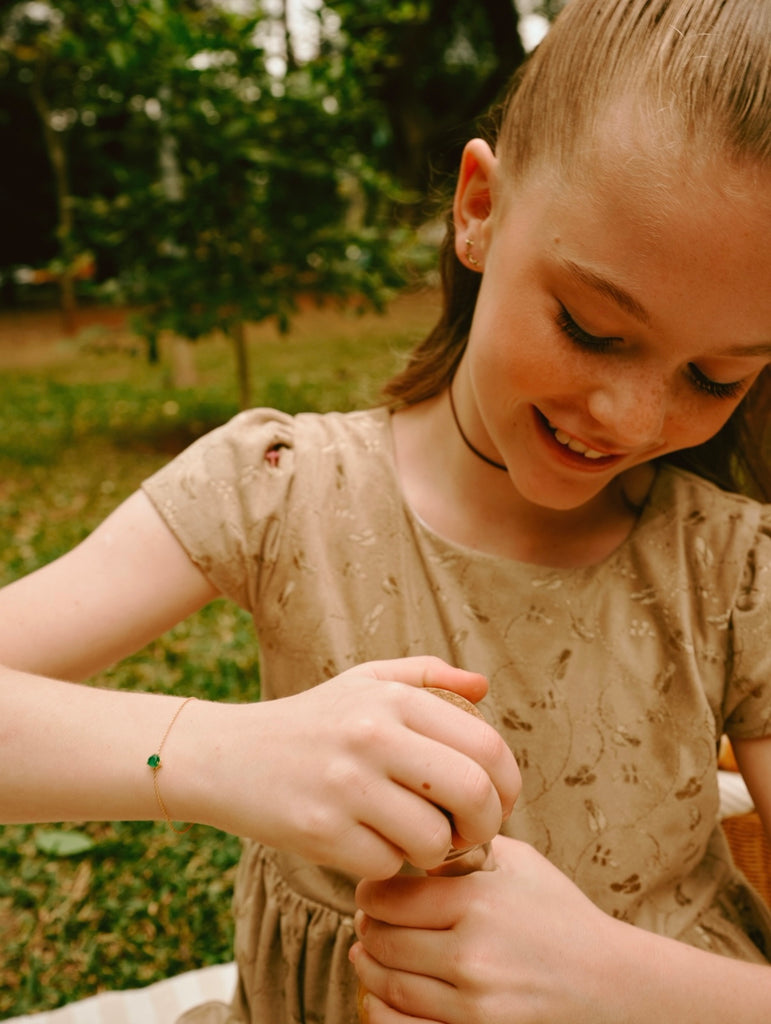Pulseira ajustável em ouro 18k com esmeralda natural redonda .