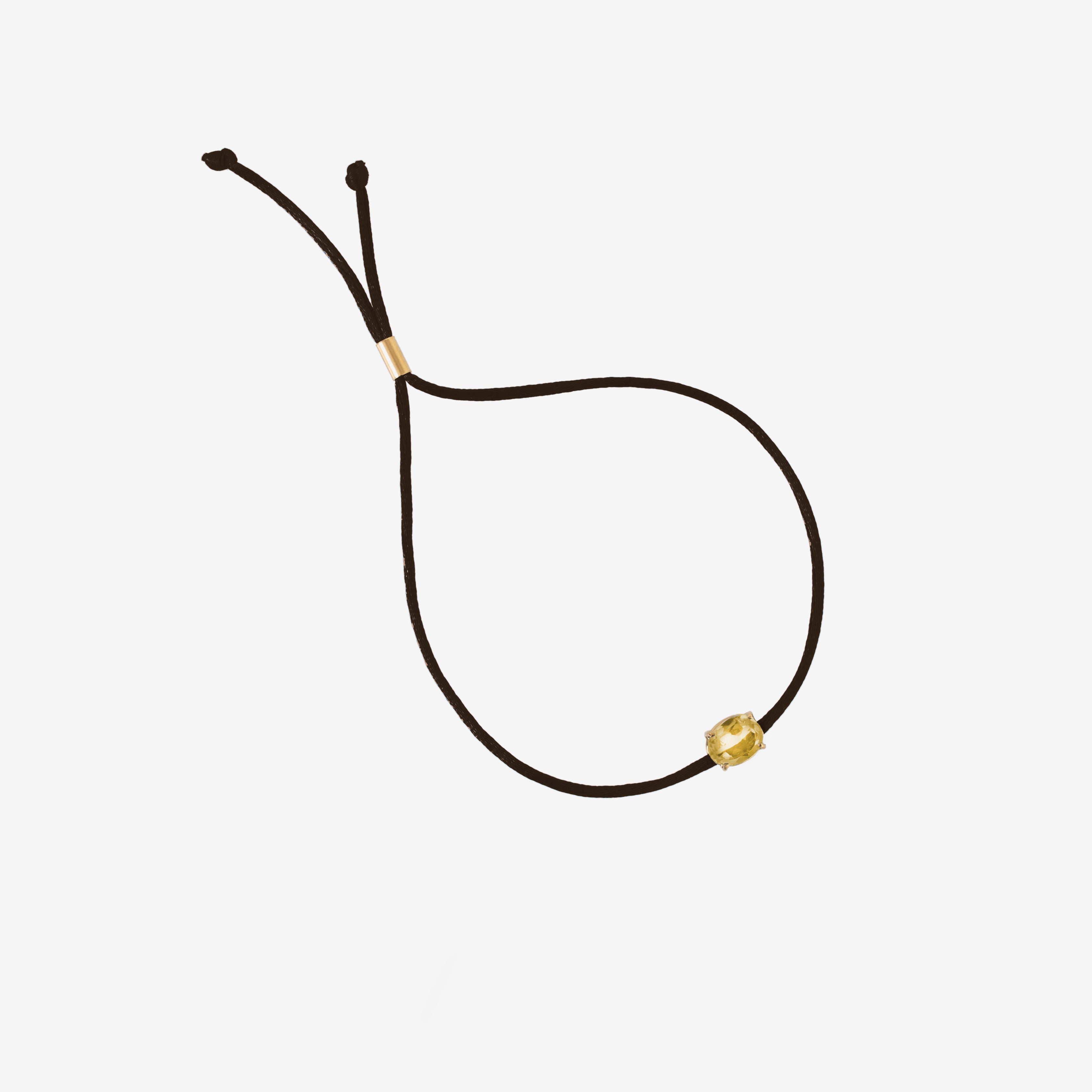Pulseira feita com fio de seda preto, com pingente oval de Citrino.